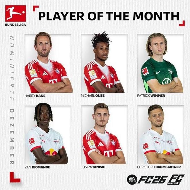 德甲12月最佳候选:拜仁三将凯恩、奥利塞、斯塔尼西奇入选