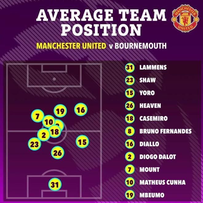 阿莫林调兵遣将,先后用科比·梅诺、谢什科和利桑德罗·马丁内斯替换卡塞米罗、芒特和约罗。库尼亚的射门疑似再次击中伯恩茅斯后卫的手臂,但裁判仍然没有判罚。