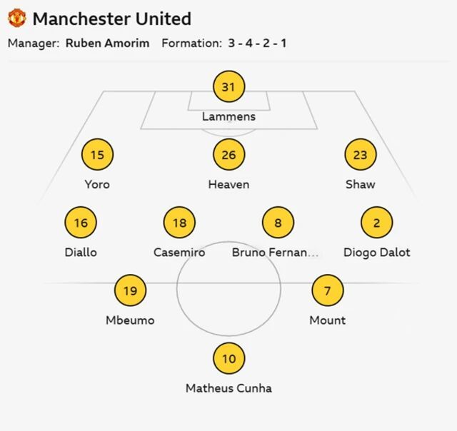 本场比赛,摩洛哥拒绝了曼联让马兹拉维留队参赛的要求,但姆贝莫和阿马德·迪亚洛获准上阵。鲁本·阿莫林用莱尼·约罗替代了马兹拉维的右中卫位置,并且继续排出无锋阵容。