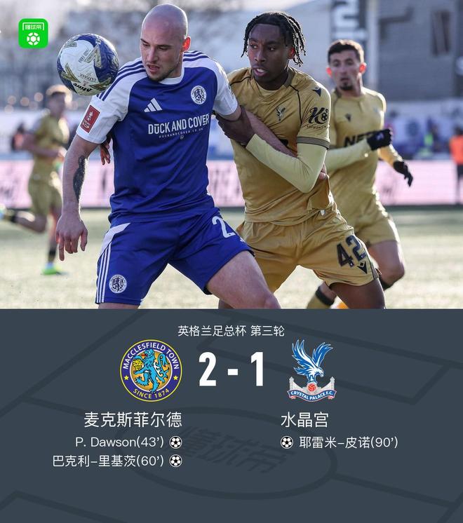 惊天大冷!足总杯卫冕冠军水晶宫1-2遭第六级别球队麦克斯菲尔德淘汰